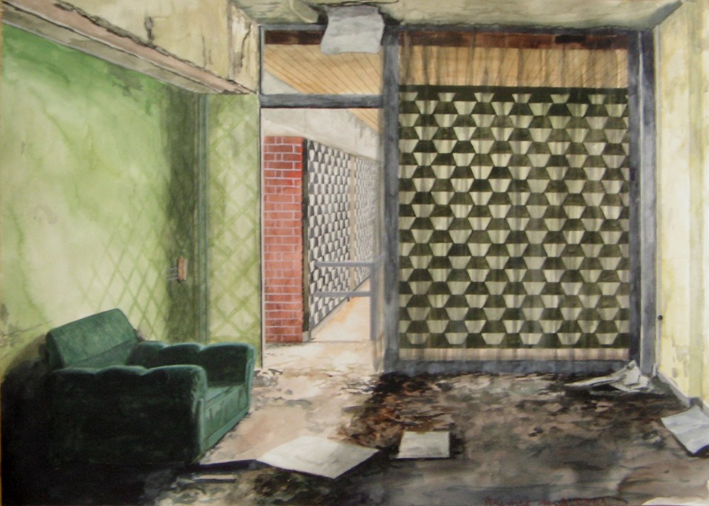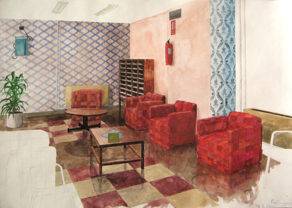39/40 Warteraum, 50 x 70 cm, Aquarell, 2011