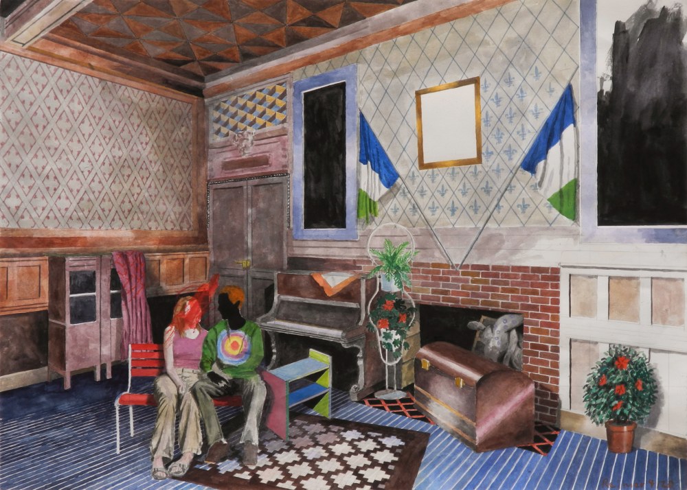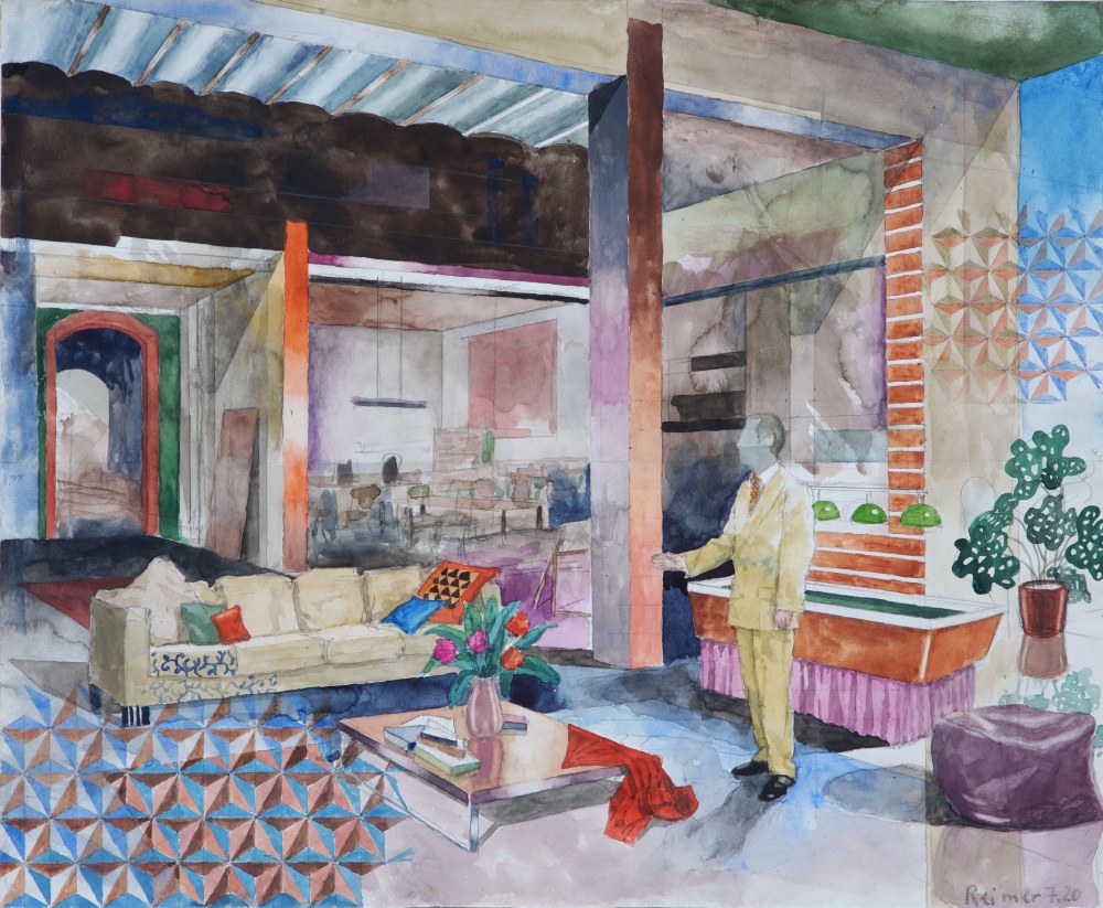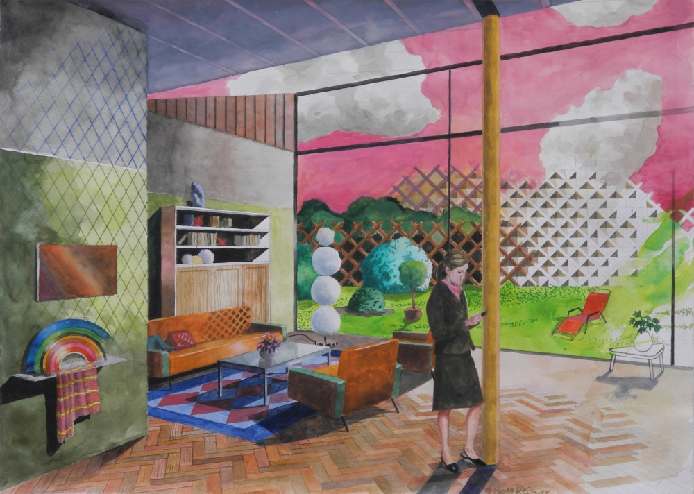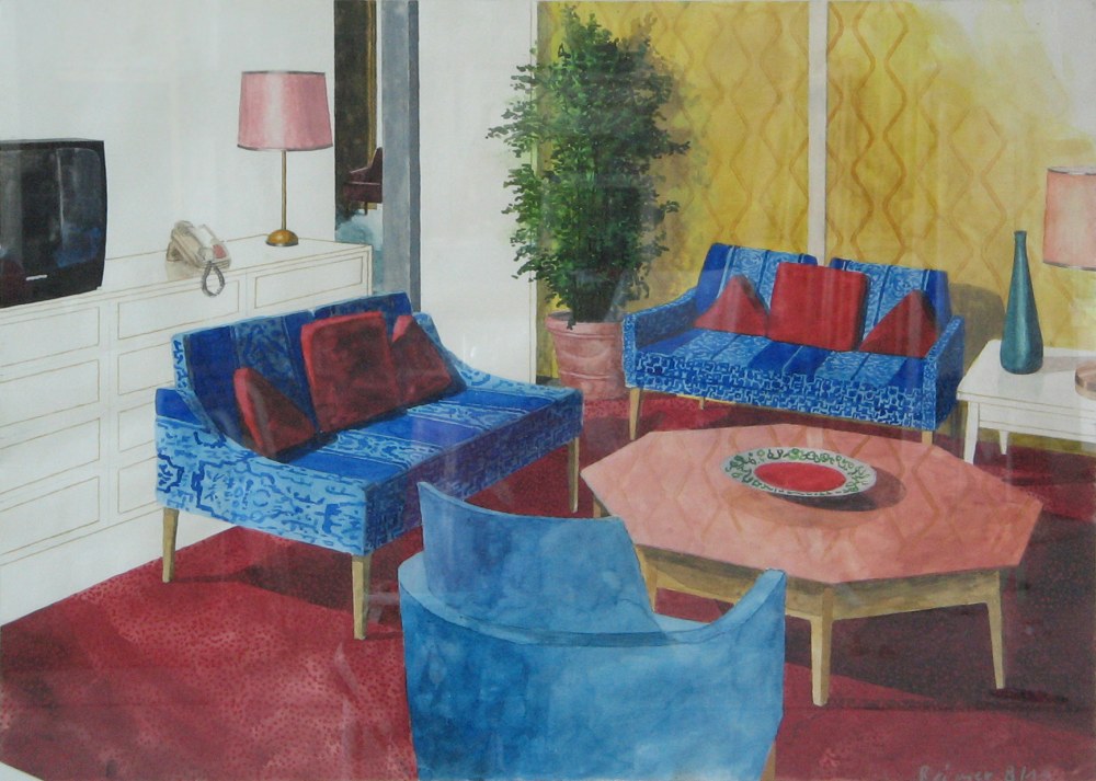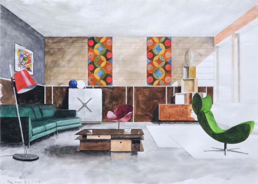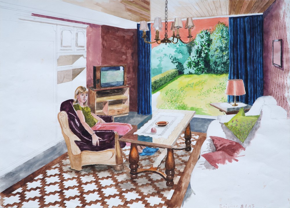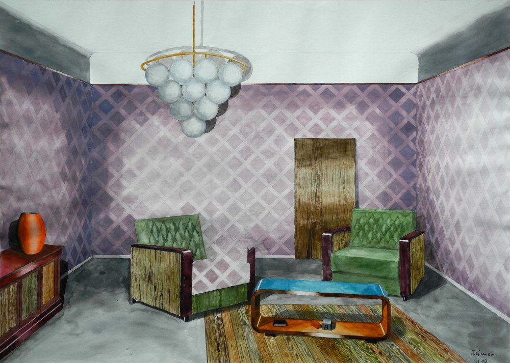 40/40 Wohnzimmer, 50 x 70 cm, Aquarell, 2019