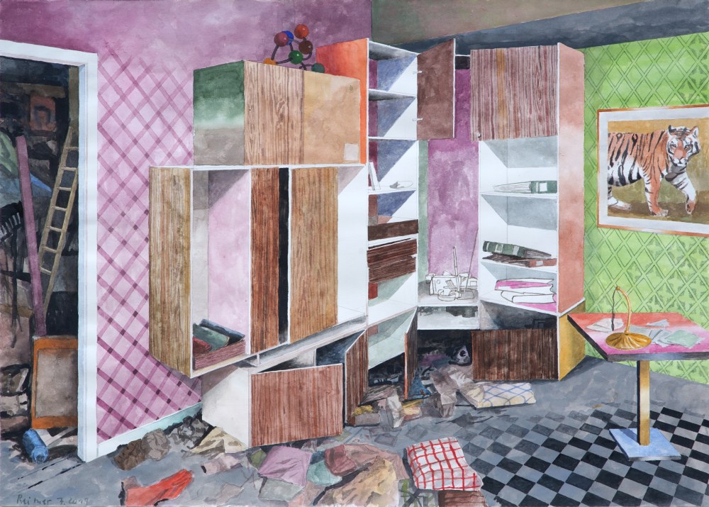40/40 Wohnzimmer, 50 x 70 cm, Aquarell, 2019